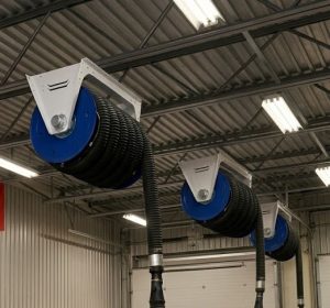 Les dévidoirs d’échappement (exhaust reel) sont essentiels pour assurer une évacuation sécuritaire des gaz d’échappement dans les garages, concessionnaires automobiles et ateliers mécaniques. Ces systèmes permettent de capter les gaz directement à la sortie du véhicule et de les diriger vers l’extérieur du bâtiment, améliorant ainsi la qualité de l’air et la sécurité des techniciens.